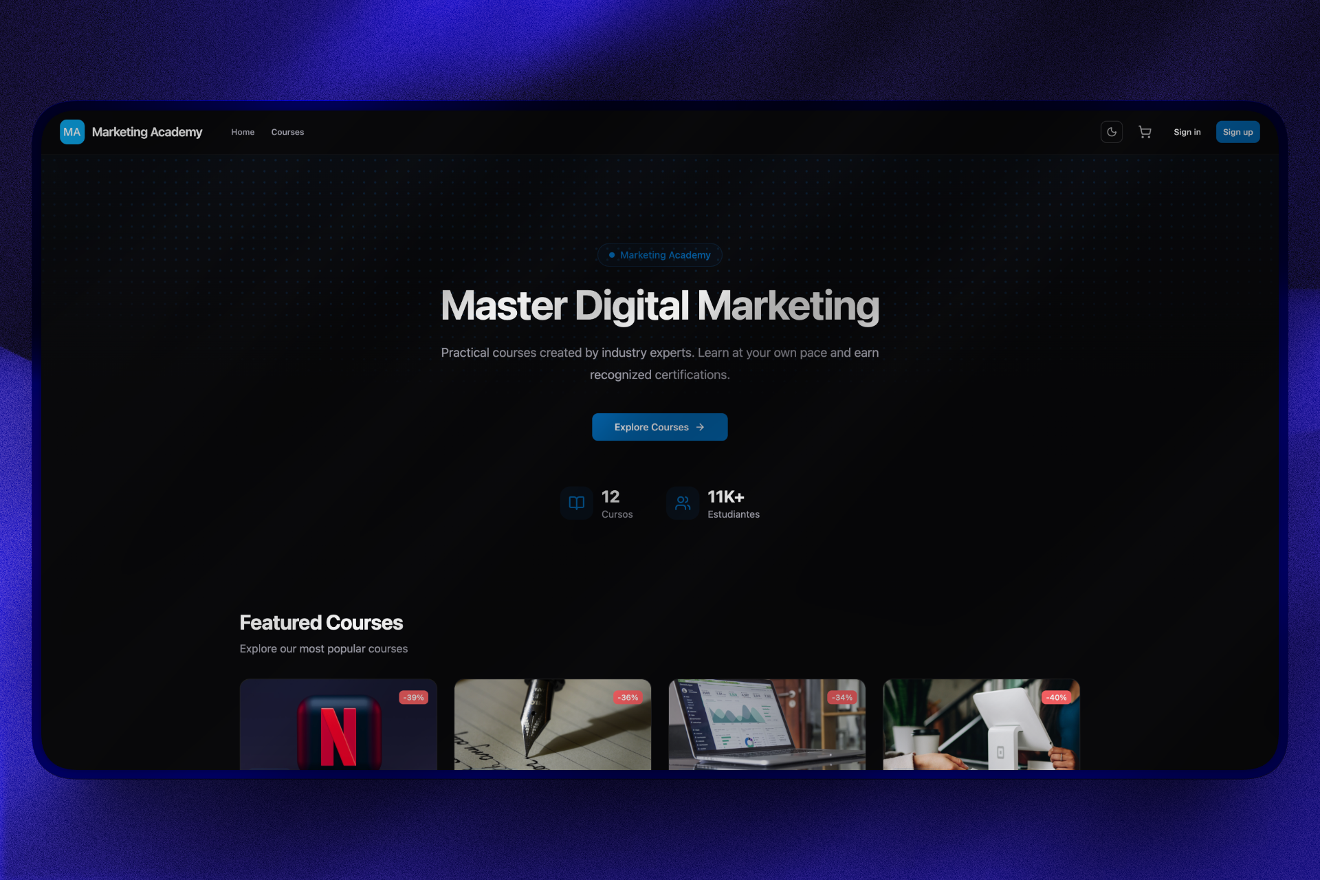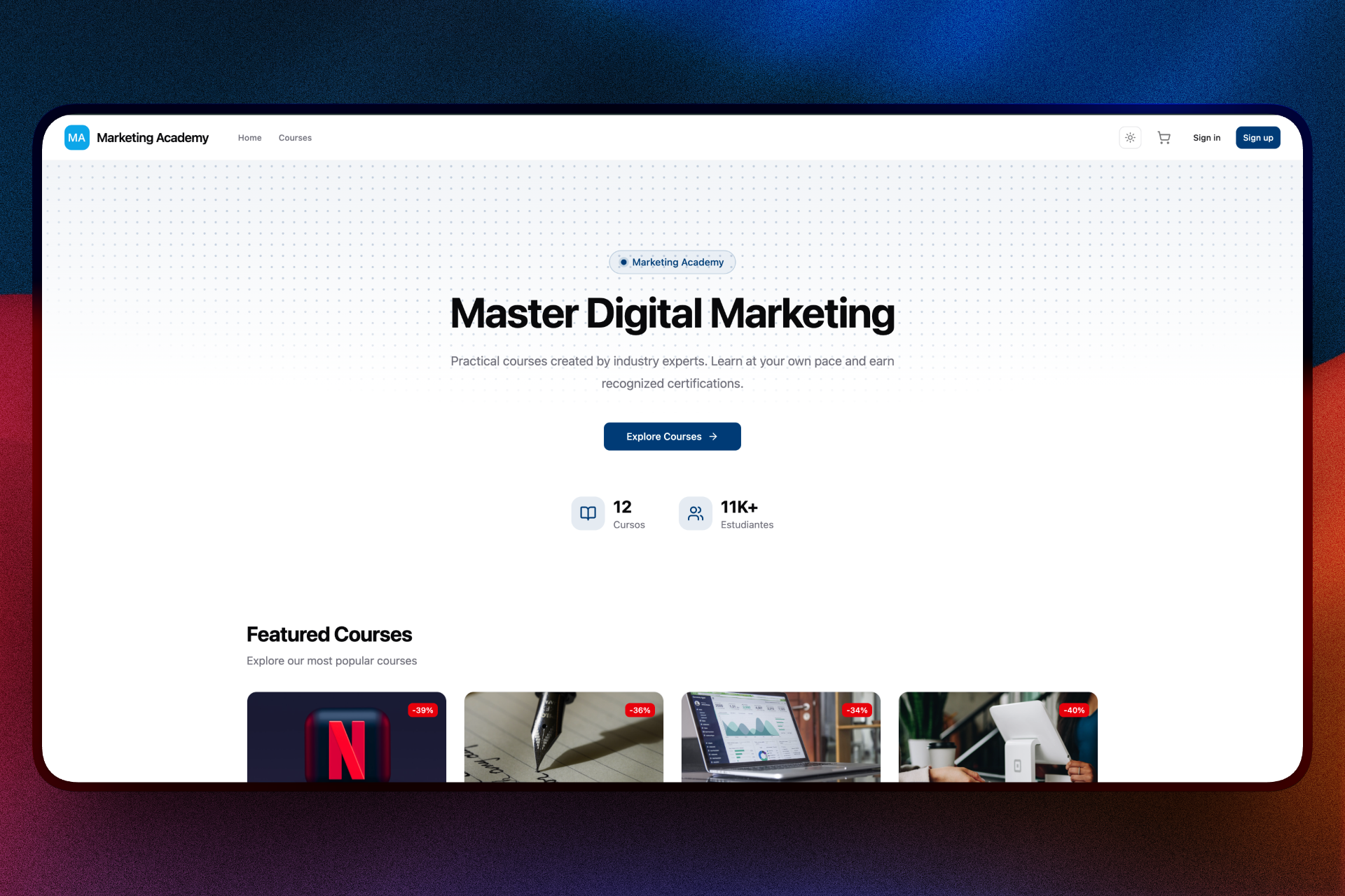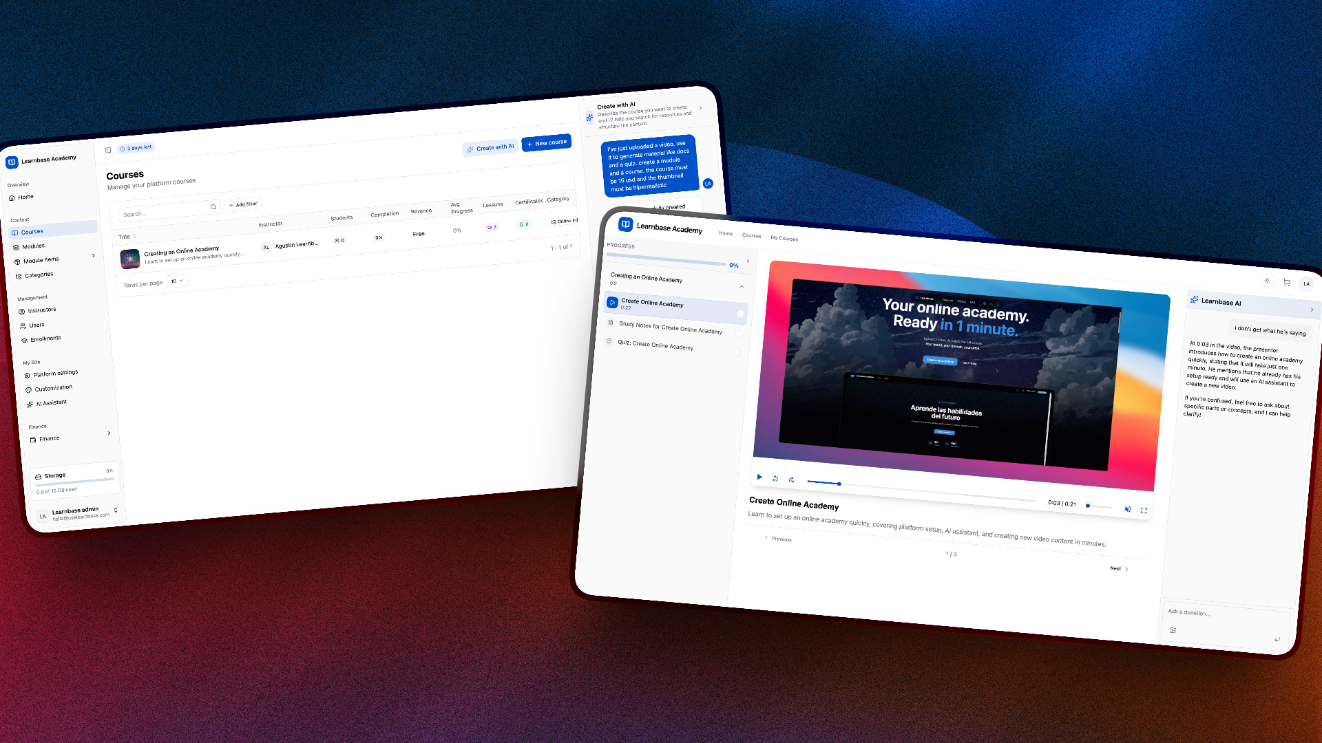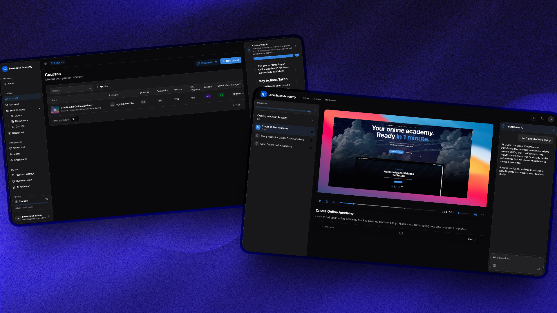 Tu academia online. Lista en 1 minuto.